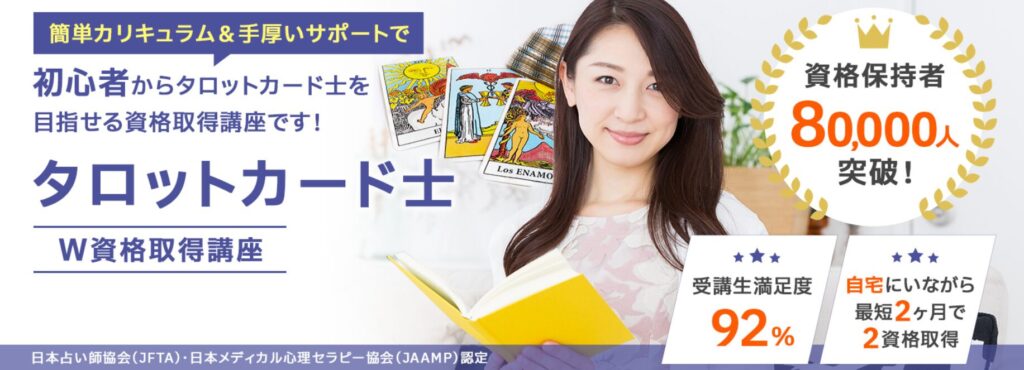 「タロットカード士®」と「スピリチュアルタロット士®」のW資格コースも選択できます。